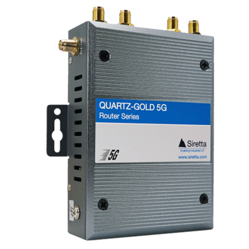 The QUARTZ-GOLD-5G router is a high speed dual port gigabit ethernet industrial router designed for transferring large amounts of data via the 5G NR cellular network. The QUARTZ-GOLD-5G’s fast data transfer capability reaches up to 2.4Gbps download and up to 900Mbps upload speed. It also has fall-back to 4G/LTE and 3G/UMTS communication, should 5G NR be unavailable. It is well suited for high speed mobile broadband applications, offering reliable, secure wireless connectivity.